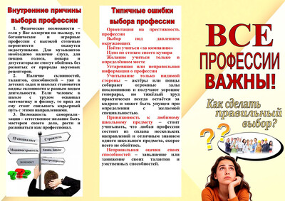Онлайн - мероприятияБуклет "Все профессии важны! Как сделать правильный выбор?"