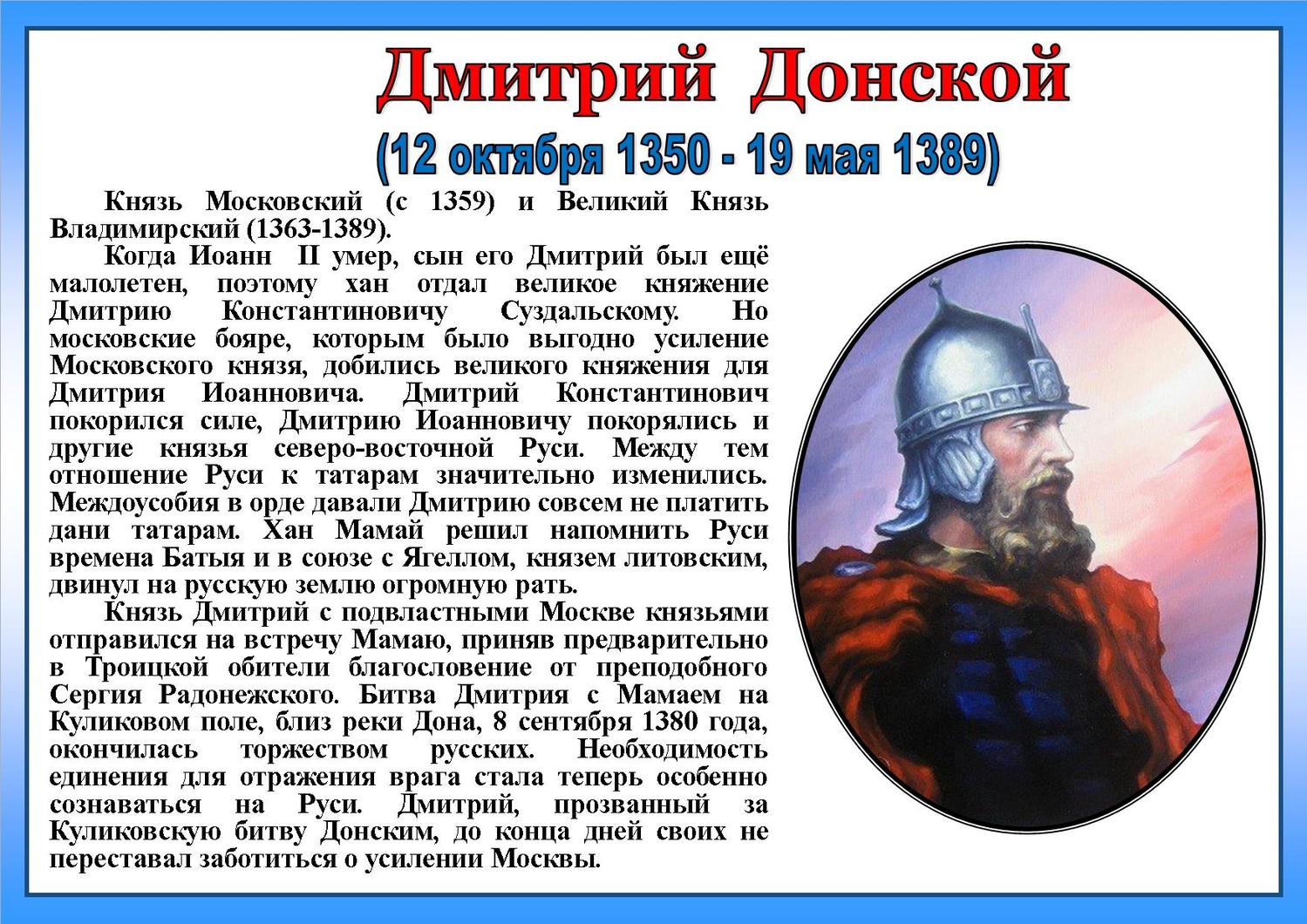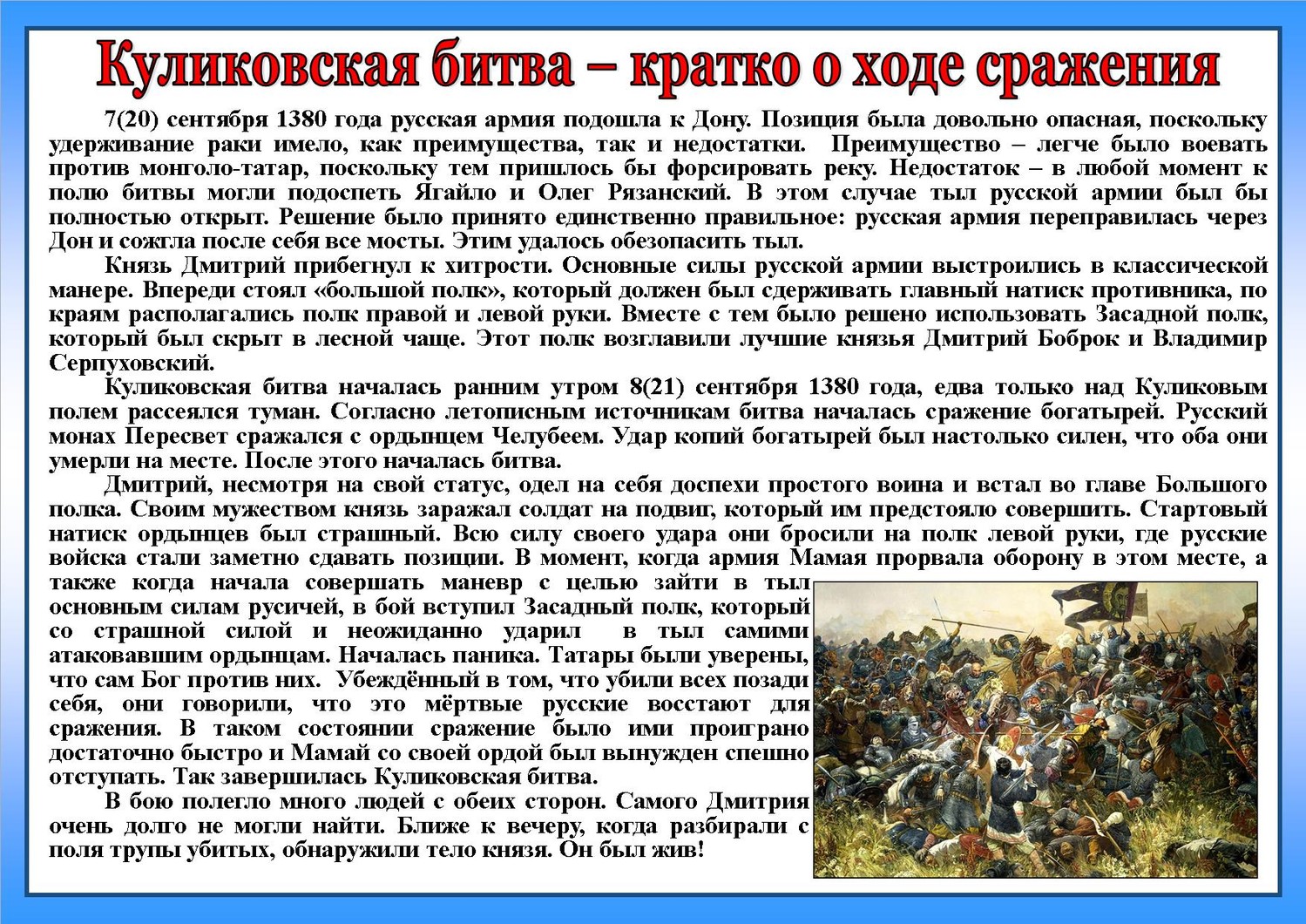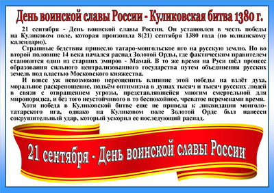 Онлайн - мероприятияДень воинской славы России – День победы русских полков во главе с Великим князем Дмитрием Донским