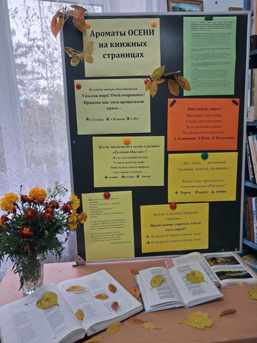 19 сентября в Мордово – Добринской библиотеке была организована книжная выставка – викторина «Ароматы осени на книжных страницах». Осень по-особому воодушевляла русских поэтов, которые посвятили ей множество своих замечательных произведений.