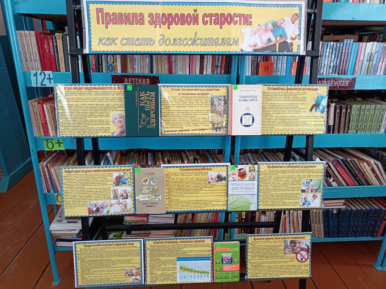 С целью привлечения внимания читателей к здоровому образу жизни, в Бакаевской библиотеке была оформлена книжно – информационная выставка «Правила здоровой старости: как стать долгожителем», ориентированная на пользователей старшего поколения.