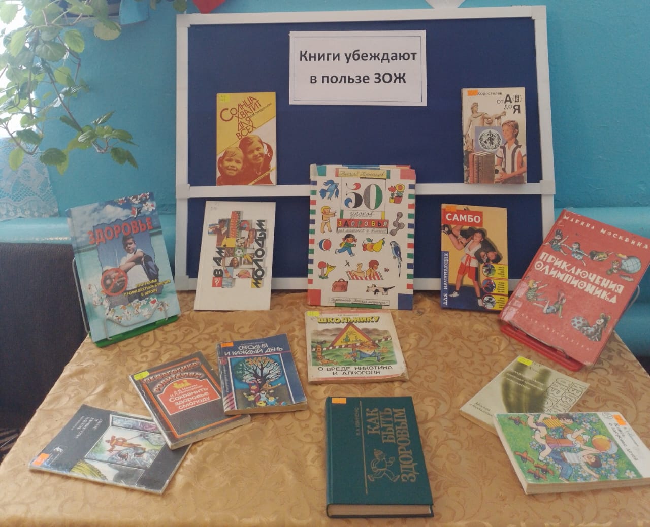 Выставка «Книги убеждают в пользе ЗОЖ» вызвала большой интерес у юных читателей. Они внимательно знакомились с представленной литературой о физических упражнениях, о самбо, о закаливающих процедурах. Особенно детям понравились издания Н.Коростелева «50 уроков здоровья», М. Москвиной «Приключения Олимпионика», Н.Коростелева «От А до Я», которые взяты для домашнего чтения.