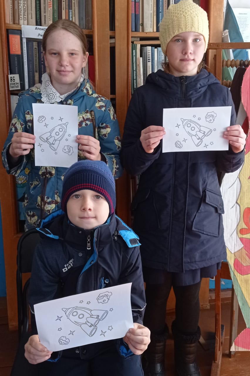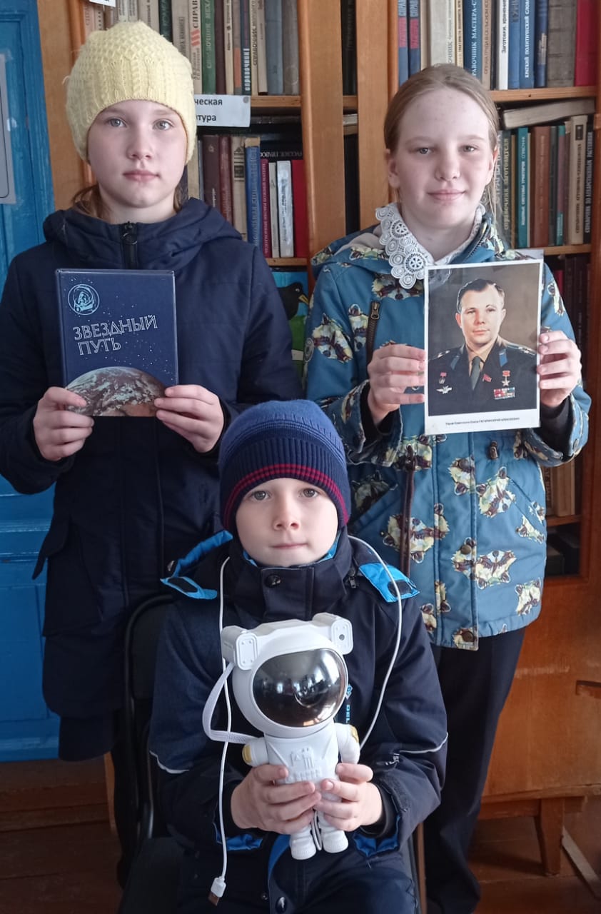 Началось мероприятие с рассказа библиотекаря о планетах Солнечной системы, о первых космонавтах - собаках Лайке, Белке, Стрелке и о полёте Юрия Алексеевича Гагарина, об основоположниках космоса. Затем ребята совершили увлекательное космическое путешествие, отгадывали загадки про космос, отвечали на вопросы космической викторины, познакомились с книжной выставкой 'Время первых".