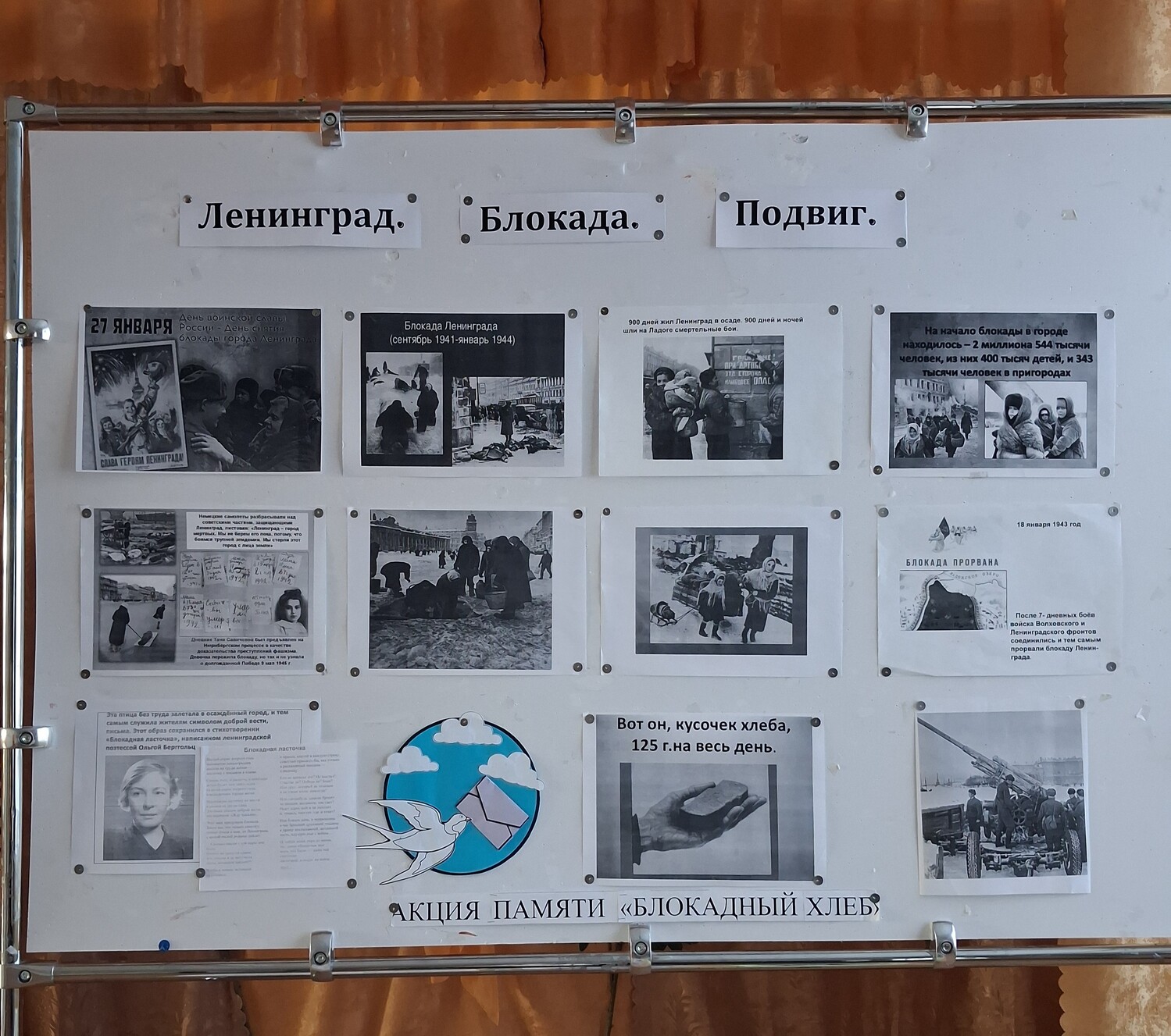 Мордово-Добринская библиотека совместно с СДК присоединились к памятной акции. Главная цель акции - почтить память погибших и отдать дань уважения и стойкости ленинградцев, укрепить историческую память и патриотическое сознание граждан. Оформлен стенд «Ленинград. Блокада. Подвиг.»