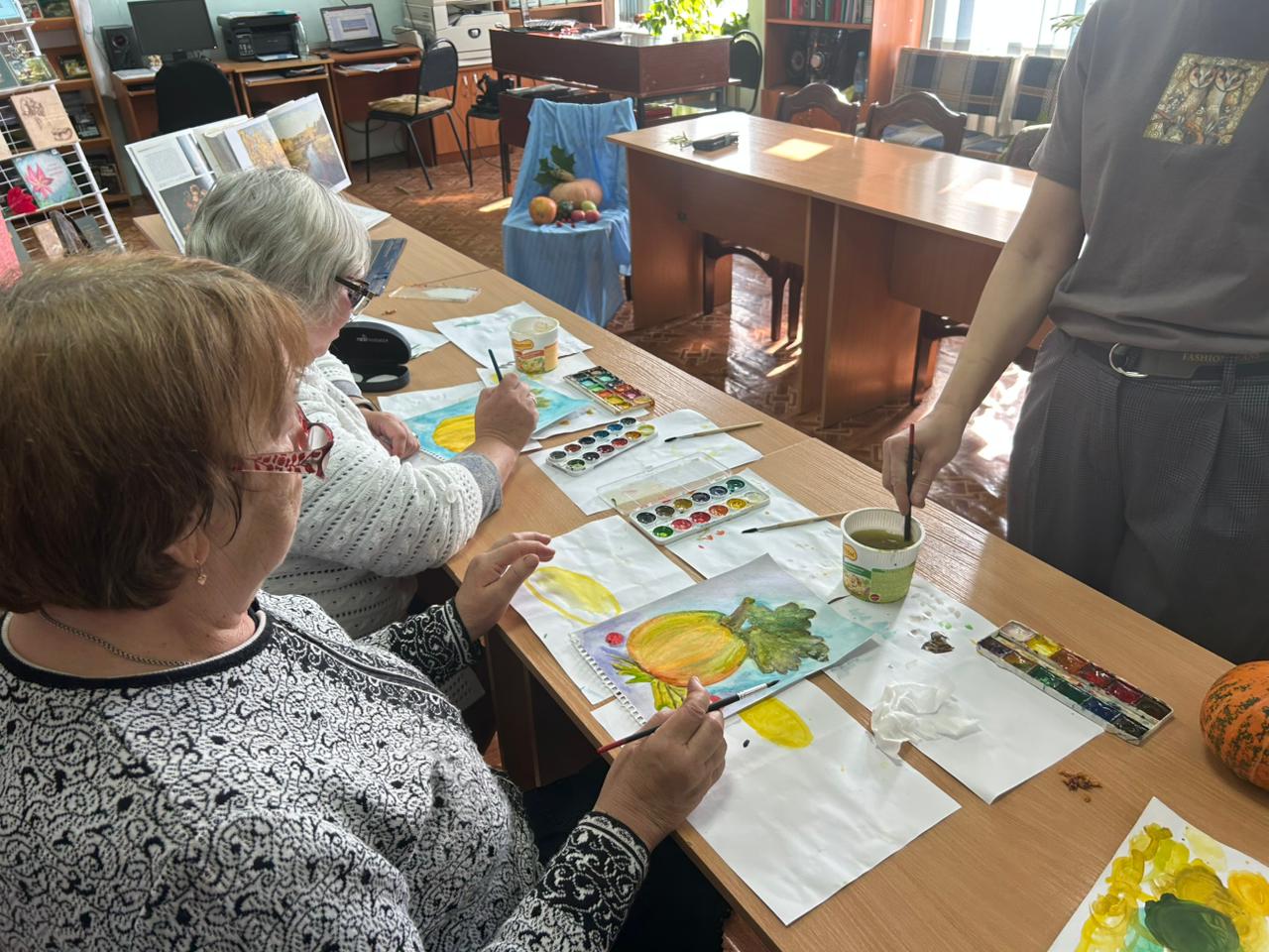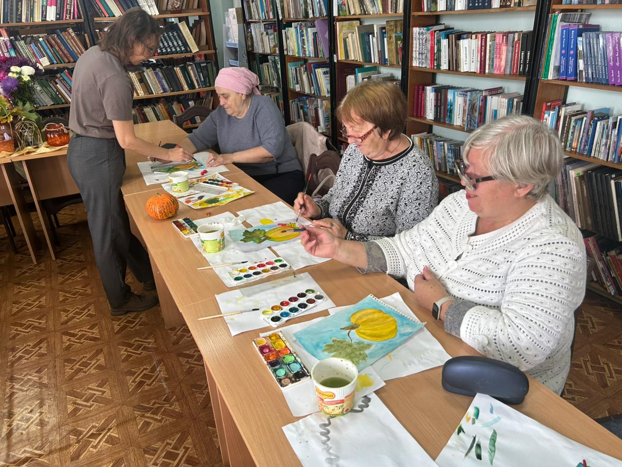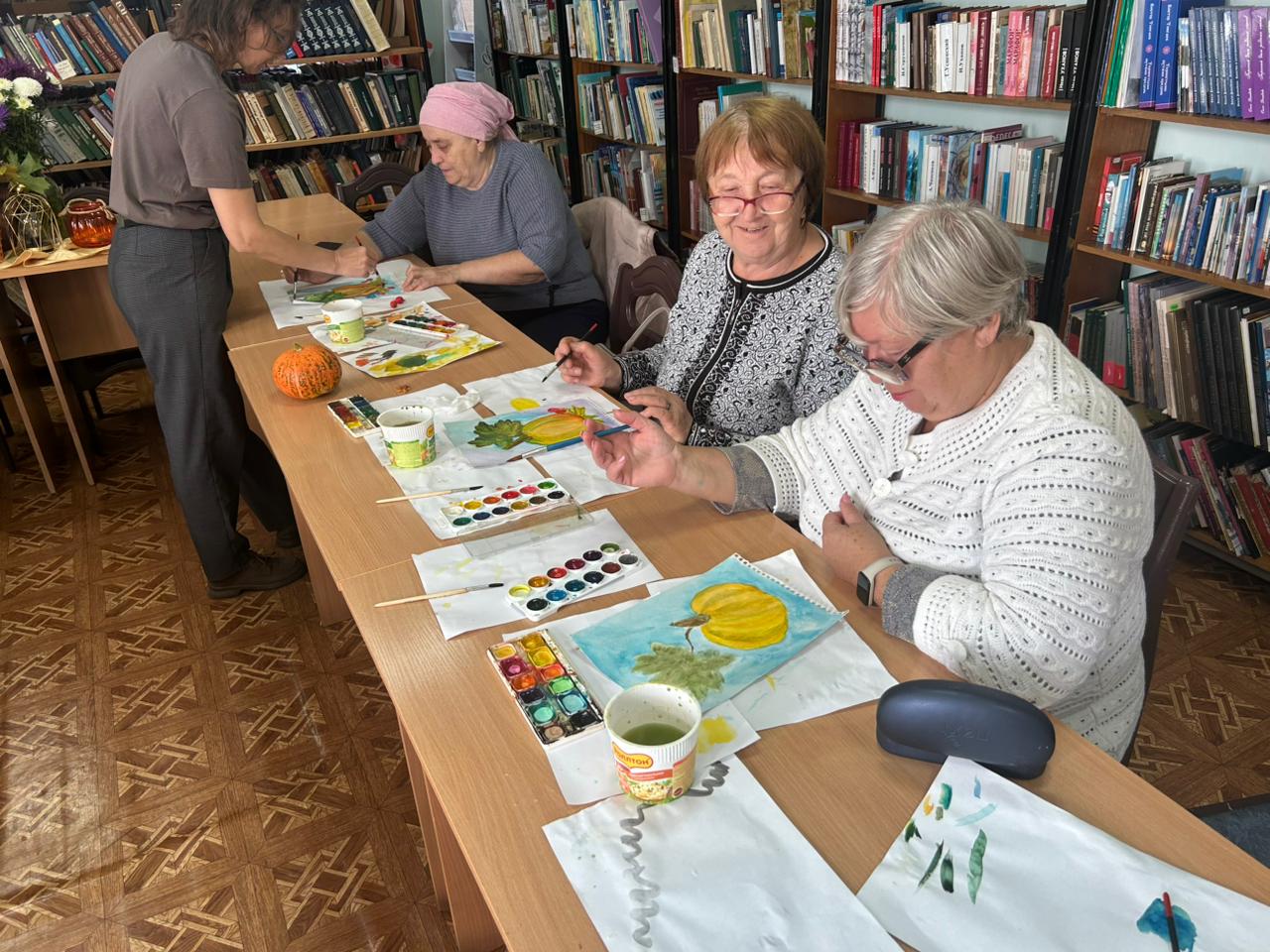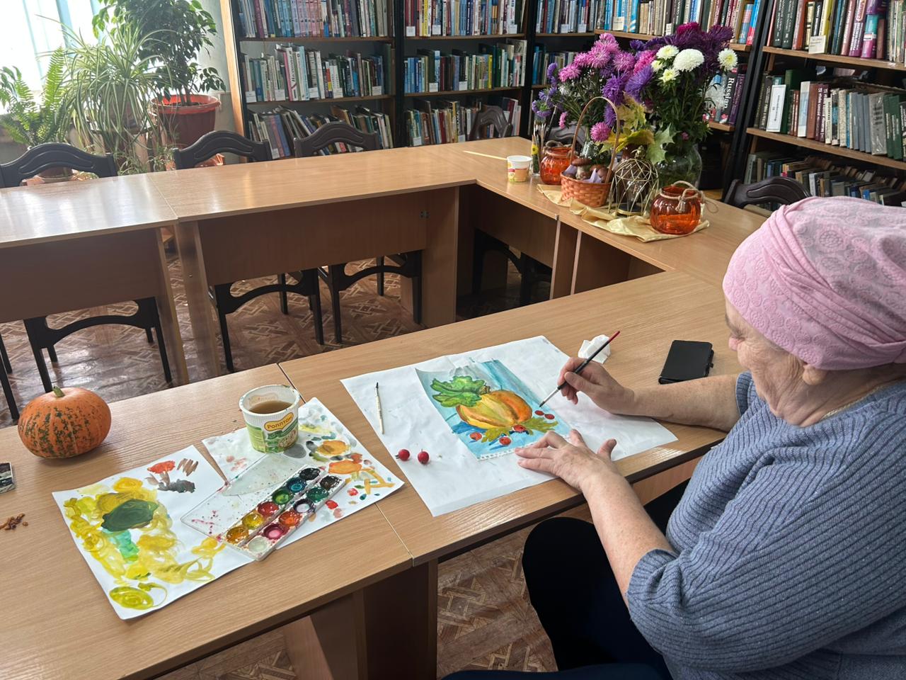 18 сентября в Центральной районной библиотеке состоялся арт-час «Вкусные дары щедрой осени», для членов клуба "Добрые встречи". Это второе мероприятие из цикла «Рисуем за один день», оно было посвящено жанру изобразительного искусства натюрморт.