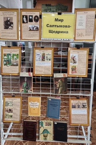 К мероприятию подготовлена книжная выставка «Мир Салтыкова-Щедрина». Вниманию читателей представлены знаменитые произведения автора, такие как «История одного города», «Господа Головлёвы» и «Сказки для детей изрядного возраста».