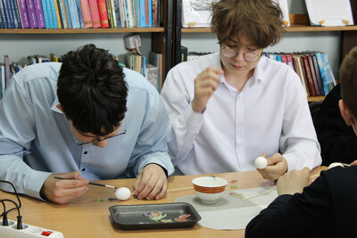 Процесс был простым, но требовал аккуратности и внимания к деталям. Ребята начали с размещения рисунка на заготовках из пенопласта в форме яйца, чтобы выстроить композицию и собрать из разрозненных кусочков картинку. Главным украшением стали салфетки с весенними цветами и ботаническими мотивами.