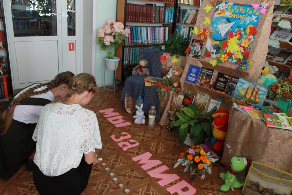 2 сентября, в Центральной районной библиотеке прошел урок мира «Будущее без терроризма, терроризм без будущего». Библиотекарь Пиянзина Е.И. познакомила юных читателей с основными понятиями, такими как «теракт» и «терроризм». Особое внимание было уделено событиям, произошедшим в школе города Беслана, которые стали одной из наиболее трагичных страниц современной истории нашей страны. Затем был показан обучающий видеоролик, в котором представлен материал о том, как не стать жертвой теракта и как себя вести в чрезвычайной ситуации. Далее школьники приняли участие в викторине «Что я знаю о терроризме?». В конце мероприятия дети почтили память жертв террористических актов и сотрудников правоохранительных органов, погибших при исполнении служебного долга, минутой молчания.