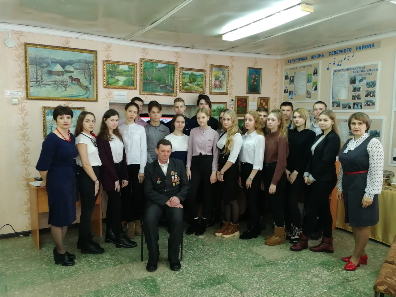 11 февраля 2020 г., отдавая дань уважения тем, кто проявил высочайшую силу духа, самоотверженность, героизм, выполняя боевой долг в Афганистане, библиотекарь центральной районной библиотеки Киселёва Л.А. совместно с заведующей районным музеем Драполенко Г.А. для учащихся 10 классов провели урок мужества «Славных лиц в России много». Вместе с ребятами мы попытались перелистать страницы событий с помощью реальных фактов, мультимедийных презентаций с военными фотографиями, стихотворениями и песнями, рожденными на войне, которые трогают самые тайные струны души. На фоне общих сведений об Афганистане, подробно было рассказано о службе в Афганистане и гибели наших земляков: Абалакове И.А., Кузнецове С.К., Киямове А.М., Кошкине А.П., Письмарове М.С., Рогове М.И., Ошкине М.И., Шарапове Ш.Ш.